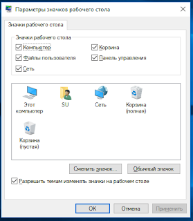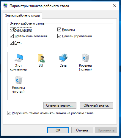 И жмем кнопку "OK". В результате откроется окно "параметры значков рабочего стола".